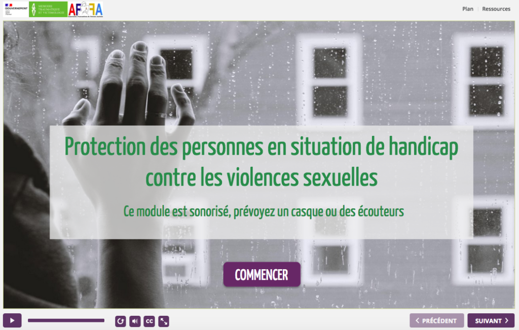 Quatre modules auto-formatifs gratuits (psychotraumatisme, prévention et repérage des violences sexuelles sur les personnes en situation de handicap)